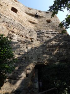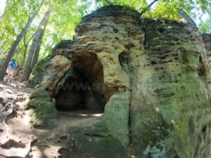 Po prohlídce hradu pokračujeme dál, stále po červené, žluté a zelené značce, lesem mezi skalami, k areálu valečovských skalních světniček. U nich nalezneme 3. zastávku (Skalní byty).