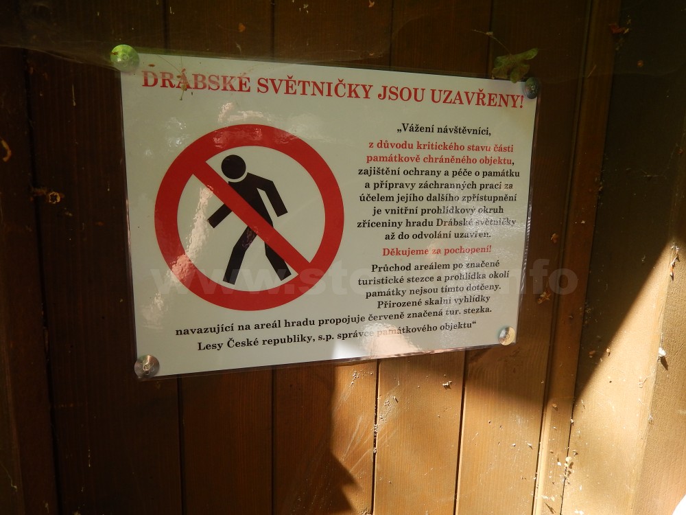 Důležité upozornění – aktuálně (od září 2025 do června 2026) jsou uzavřeny všechny pěší cesty v okolí Drábských světniček a okružní trasa naučné stezky jako celek je tudíž neprůchodná.