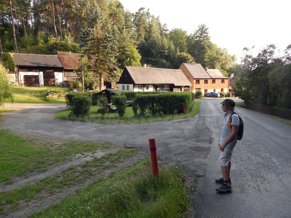 To je každopádně poslední zastávka naučné stezky, a nám zbývá ujít ještě dalších asi 700 metrů po silnici osadou Zásadka, na křižovatce v centru odbočit vlevo a pak zbytek cesty k parkovišti pod hradem Valečov, kde naučná stezka končí.